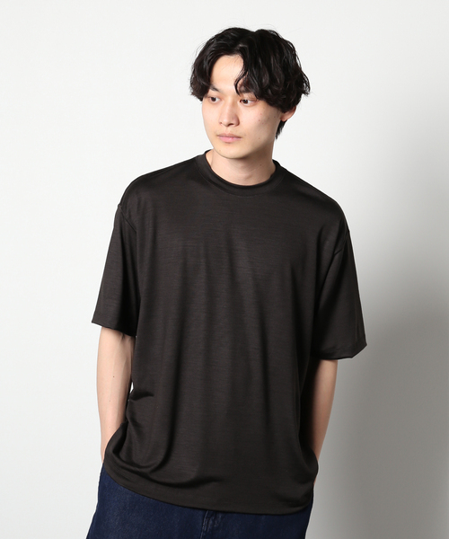 JOURNAL STANDARDオリジナルの商品です。メリノウールの高品質な素材で作られた、光沢とドレープ性を備えた大人向けのジャージーTシャツとのこと。ネック部分が詰まっているので、綺麗な印象ですが、若干の窮屈感がありました。